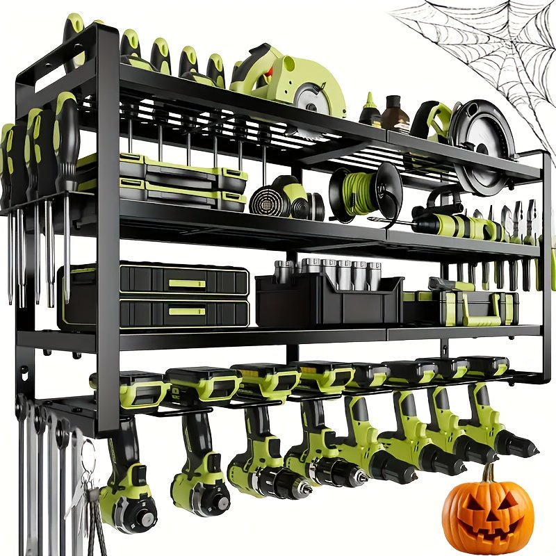 power tool organizer wall mounted garage tool storage 4 tier cordless tool organizer with 8 drill bracket garage tool rack gifts fall decorations halloween decor storage racks