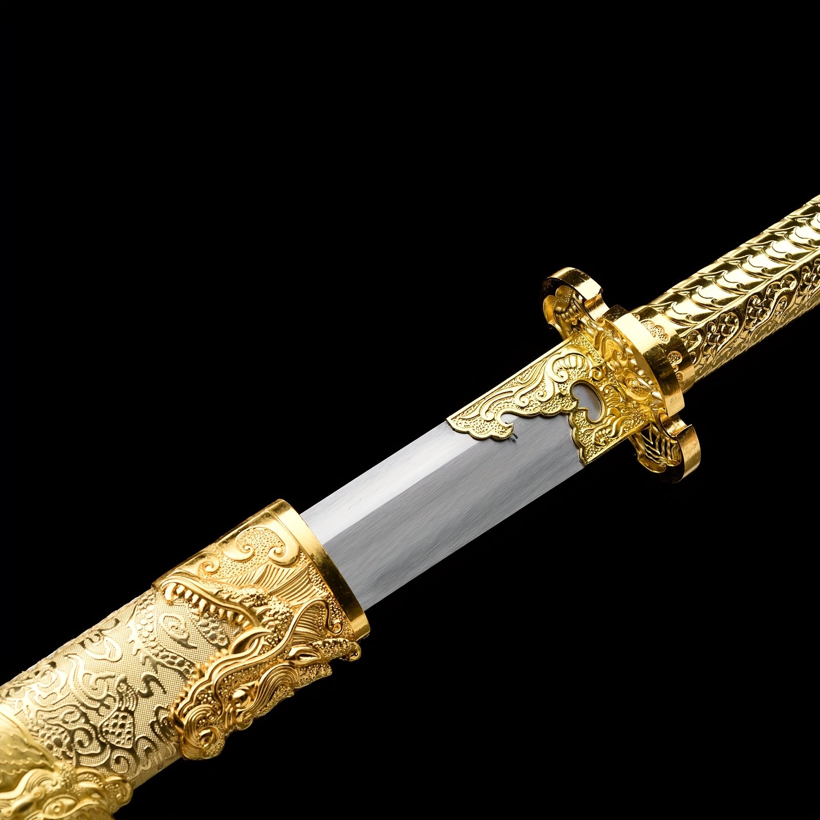 Pure Handmade Golden Dragon Embroidery Spring Knife, Using T10 Steel Forging, Knife Sheath Is Wrapped By Cowhhide, Hand Guard Is Metal Gold Plated, Swordsman Level, Christmas Gifts, Halloween Gifts, Decorations, Unsharpened Blade