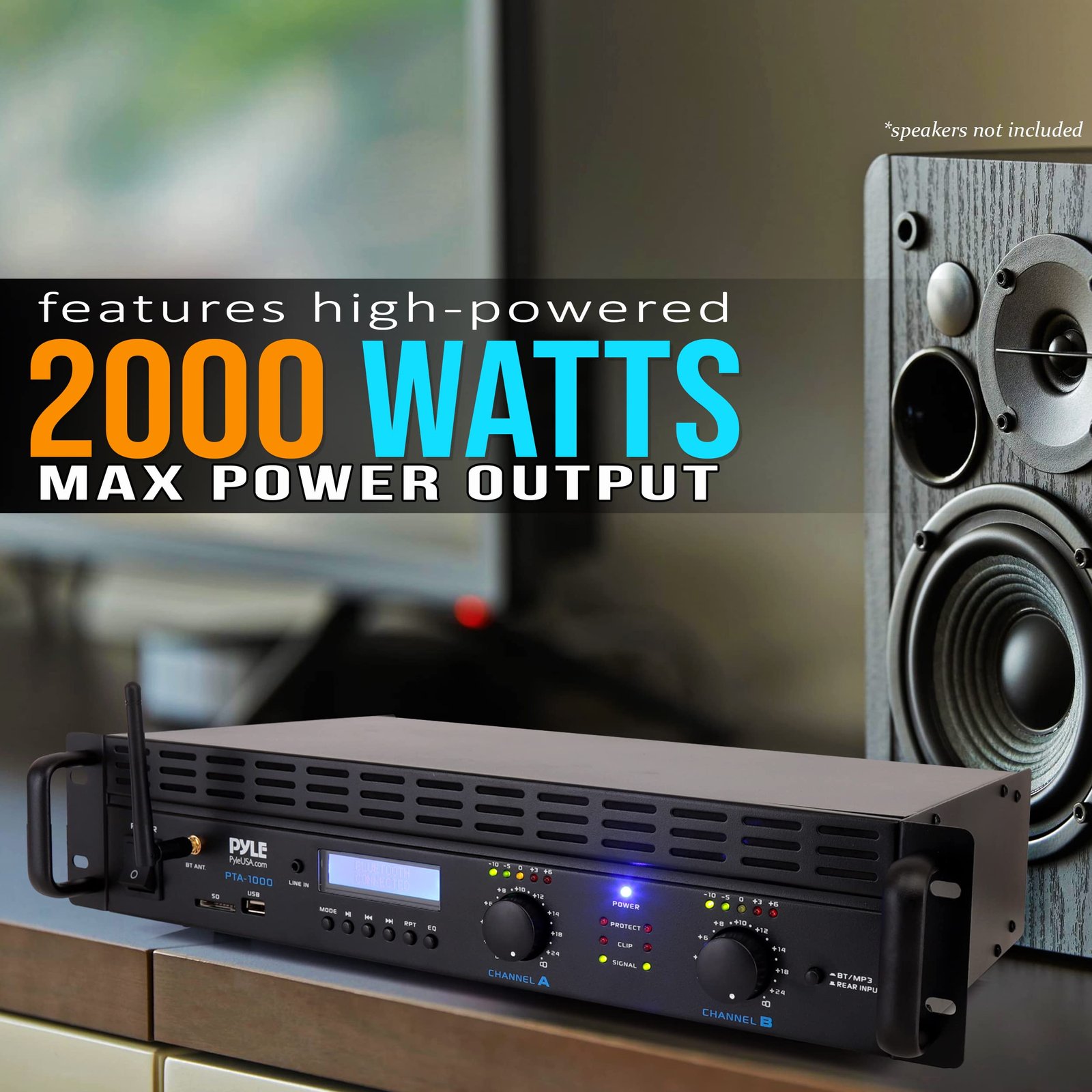 Pyle 1000 Watt 2 Channel Wireless Pro Audio Power Amplifier Rack Mount Bridgeable Professional Sound Amplifier with Built in Wireless PTA1000