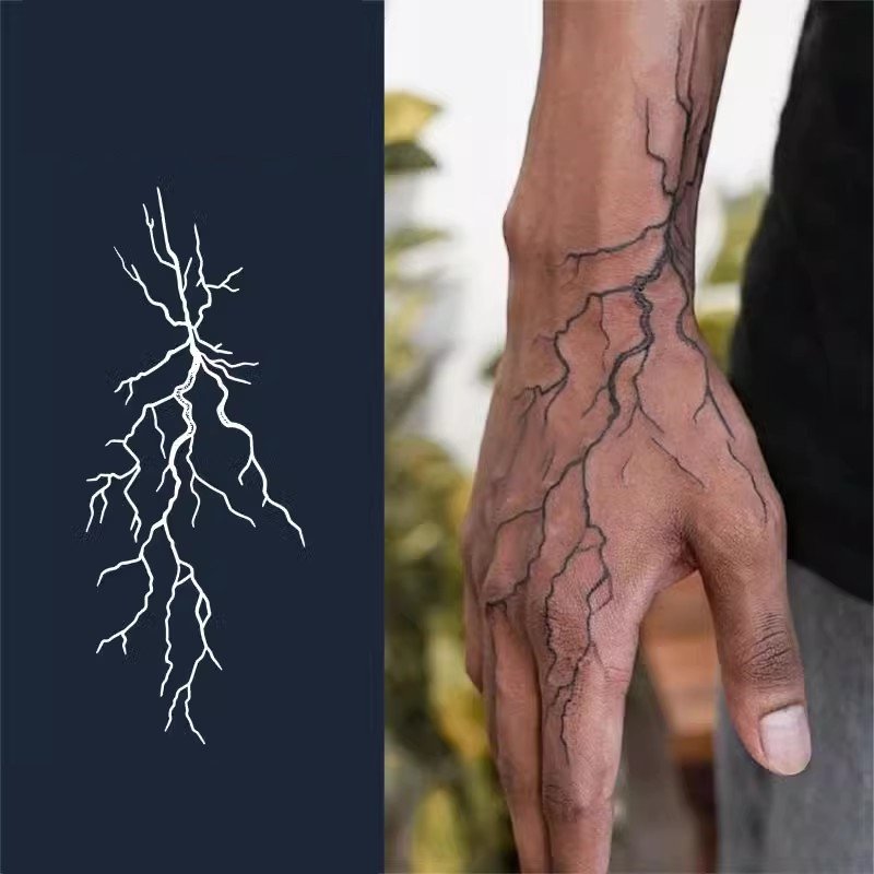[Realistic|Waterproof] Waterproof, Long-lasting 1 Sheet Hand Back Lightning Temporary Tattoo | Realistic Lightning Bolt Design for Bold Fashion Statements