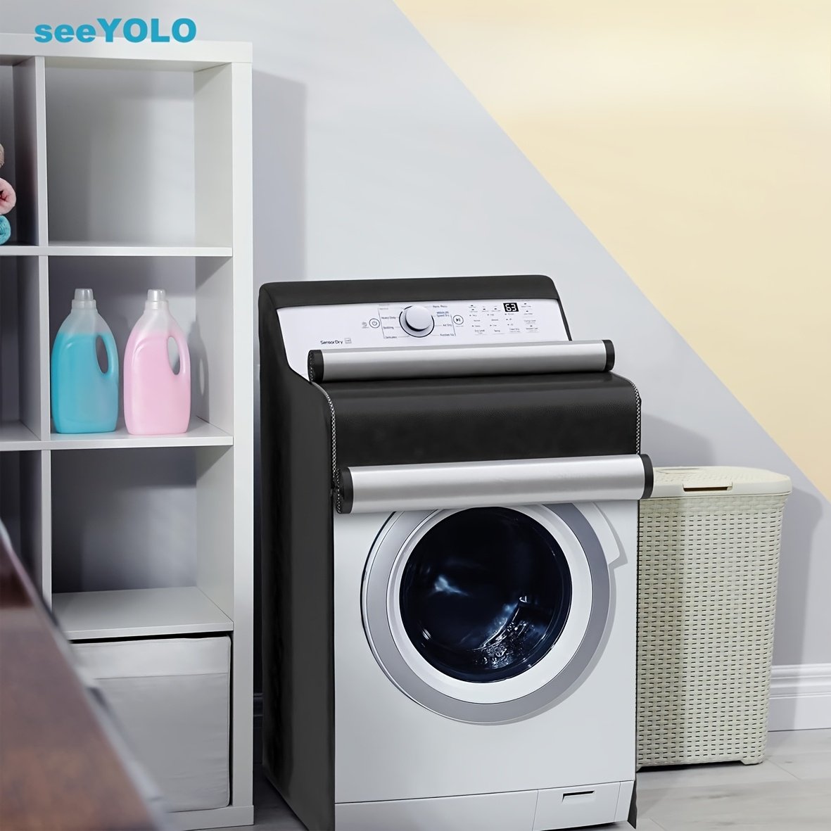 seeYOLO 1/2pcs Washer and Dryer Covers, 2 adjustable rope and Insert buckle at background, Washing Machine Cover, Washer Cover, Dryer Cover Protector, Washer Machine Cover, Laundry Covers for Wash And Dry Machine, for Top Load & Front Load black, Laundry Room Decor, Home Organization, Secure Fastening, Adjustable Cover, Reinforced Stitching, Longlasting Material, Dryer Protector, Appliance Shield, Laundry Users, Household Essentials