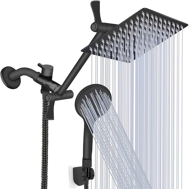 Shower System, Shower Head with Hand, 8 Inch High Pressure Rain Shower Head with Adjustable Extension Arm And 5 Settings Handheld Shower Head Combo, Water with Long Hose, Matte Black, Chrome, Bathroom Decor And Accessories