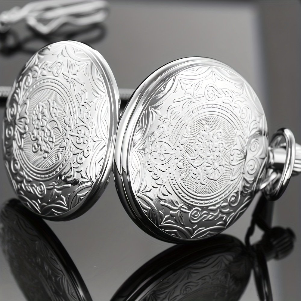 silver mechanical pocket watch flower pattern copper shell hand wind mechanical pocket watch mens watches birthdays fathers day gifts for dad