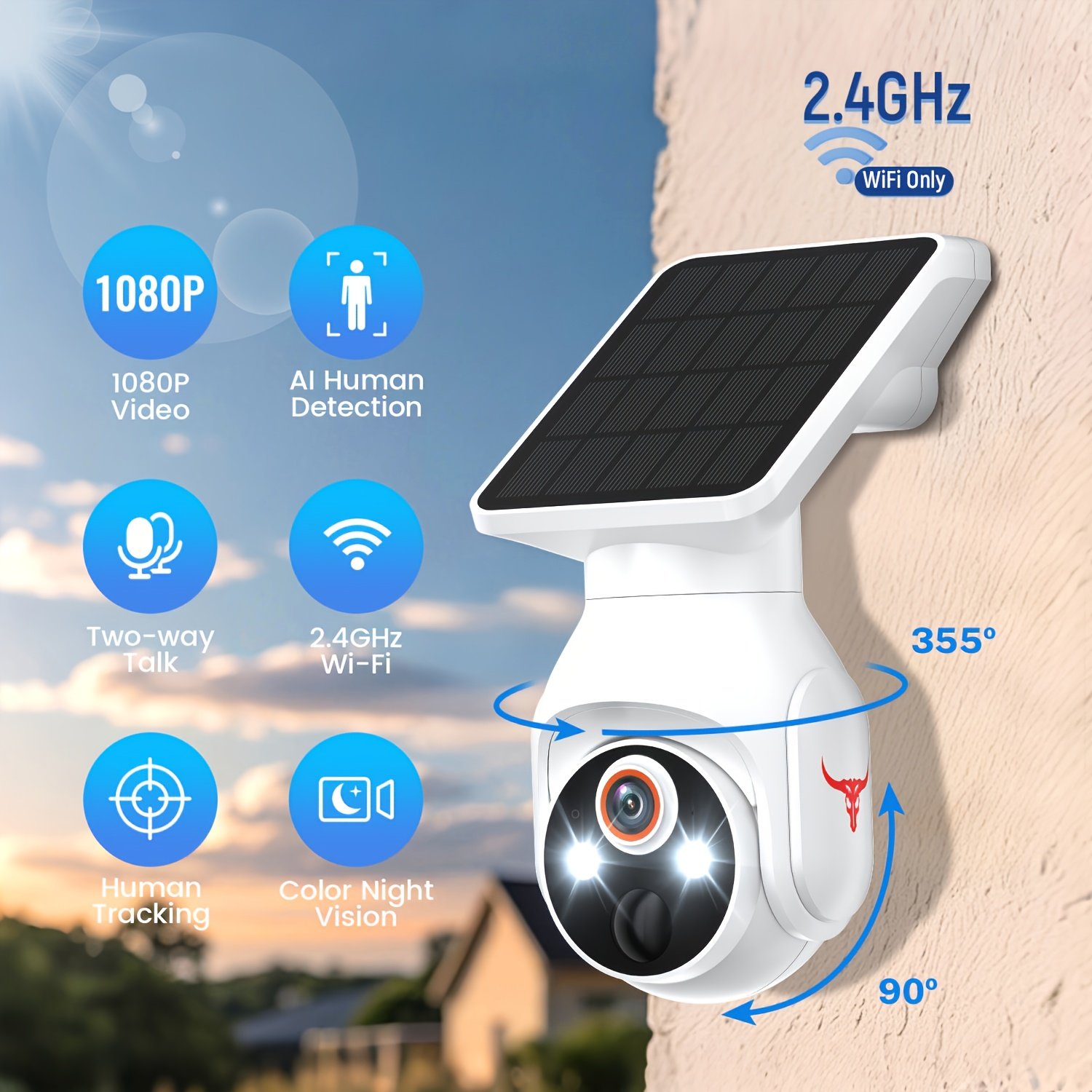 Solar Camera Security Outdoor – Security Cameras Wireless Outdoor with 360° Panoramic View, Human Auto Tracking, 1080P Night Vision,Live View, 2-Way Audio,cloud storage- advanced security cameras for home use