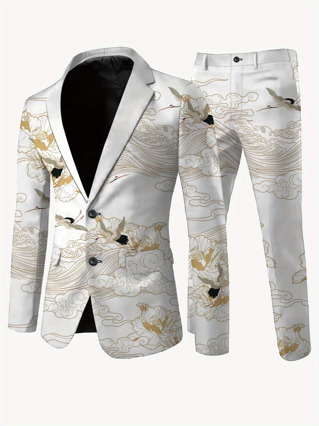 mens formal suit and trousers set casual sophisticated standard size with abstract print polyester blend long sleeve with pockets