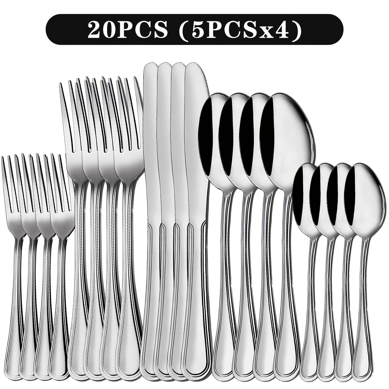 stainless steel flatware cutlery set 20 40 60pcs silverware set for 4 silvery black for home kitchen restaurant hotel kitchen utensils set polished dishwasher safe gifts and weddings local warehouse