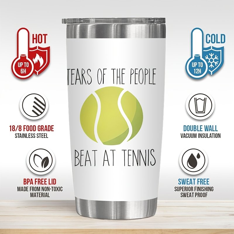 [Stainless Steel Tennis Mug] 1pc 20oz Stainless Steel Insulated Tumbler – “Tears of the People I Beat at Tennis” Travel Mug – Double Wall Vacuum Insulation, BPA Free, Sweat-Free, Rust-Resistant