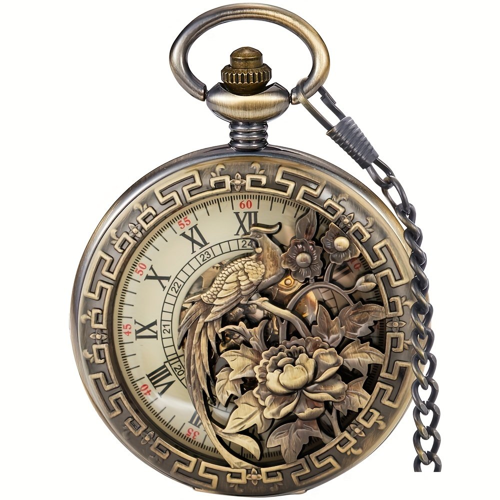 Steampunk Vintage Crane Bird Design Carved Case Design Mechanical Hand-Wind With Chain & Box Best Gifts