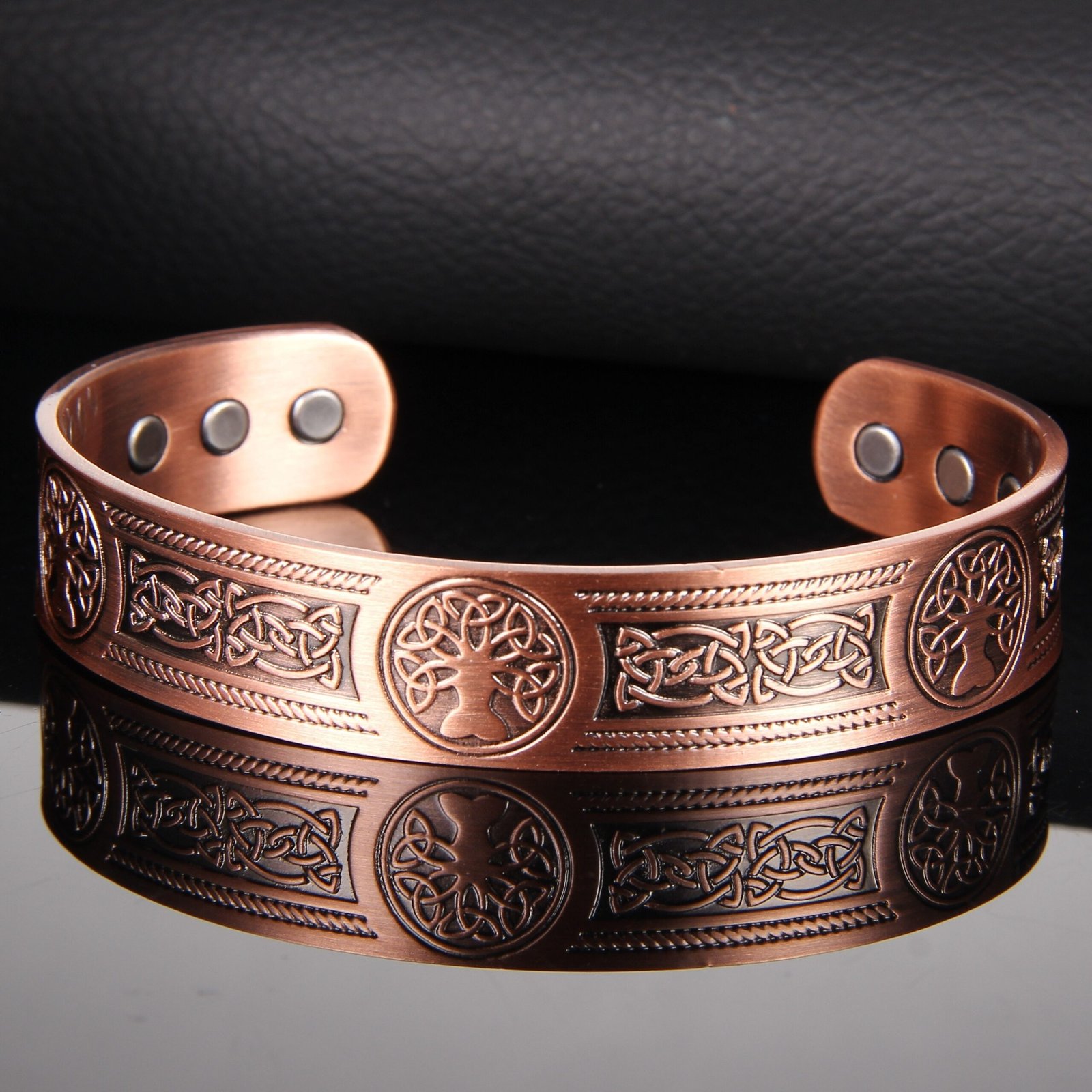 strong magnet of adjustable solid copper cuff with 6 magnets featuring intricate celtic unisex jewelry gift for dad and mom polished surface