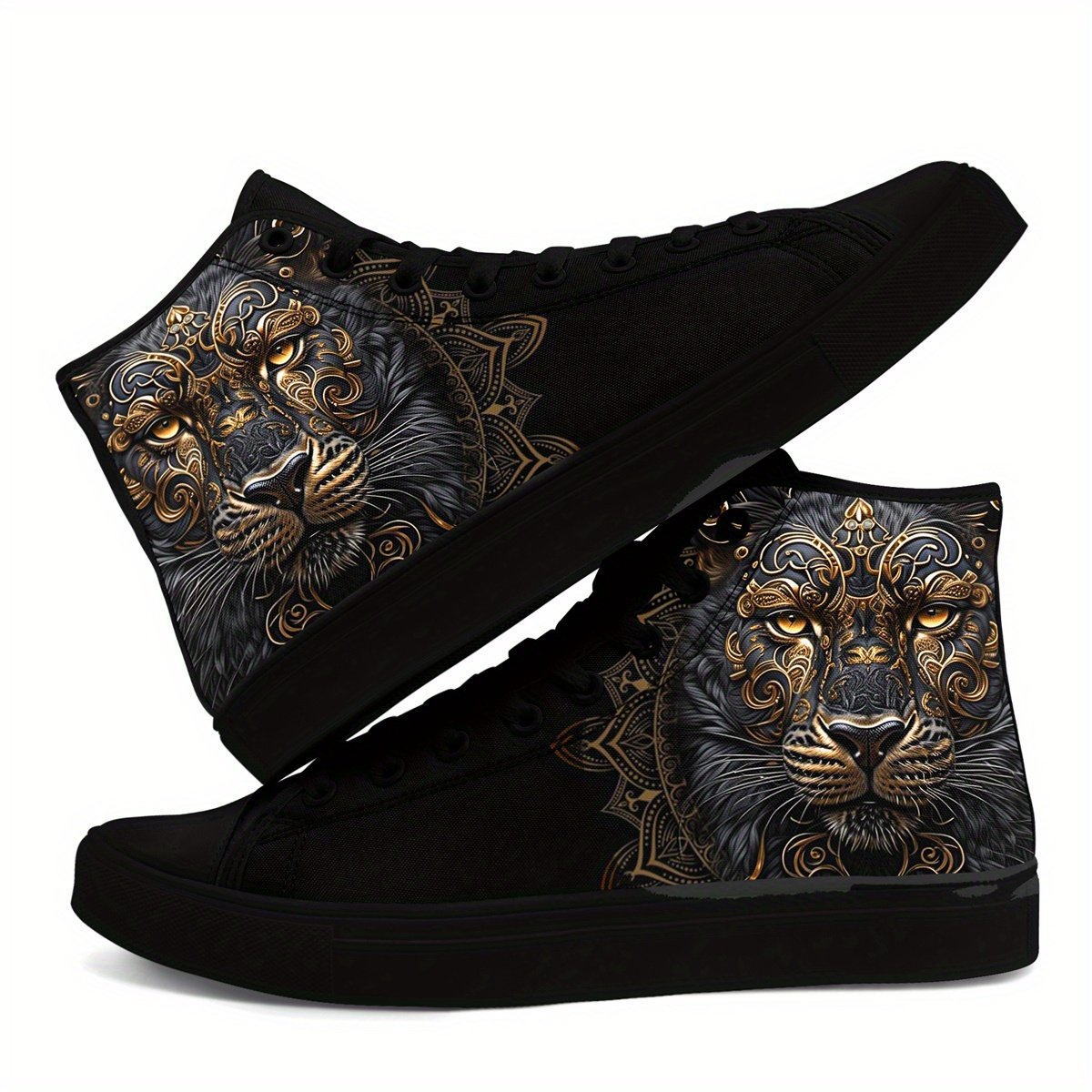 [Stylish High Top Sneakers] Stylish High Top Sneakers for Men | Golden Lion Mandala Design, Comfortable & Durable Fabric Upper, Rubber Sole, All-Season Casual Walking Shoes, Urban Fashion, Perfect Gift for Fashion Lovers, Streetwear, Intricate Pattern