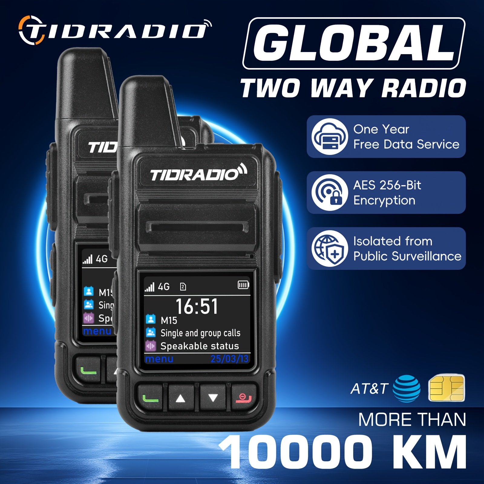 TIDRADIO M15 Global Walkie Talkies 4G POC with SIM Cards, Long Distance 5000 Miles Rechargeable Nationwide Unlimited Range Two Way Radios & USB-C Battery (2 Pack), Team Coordination Tool, Emergency Communication, Handheld Transceiver, Portable Device, Rechargeable Battery, Sturdy Build, Usbpowered Radio, Security Personnel, Construction Workers