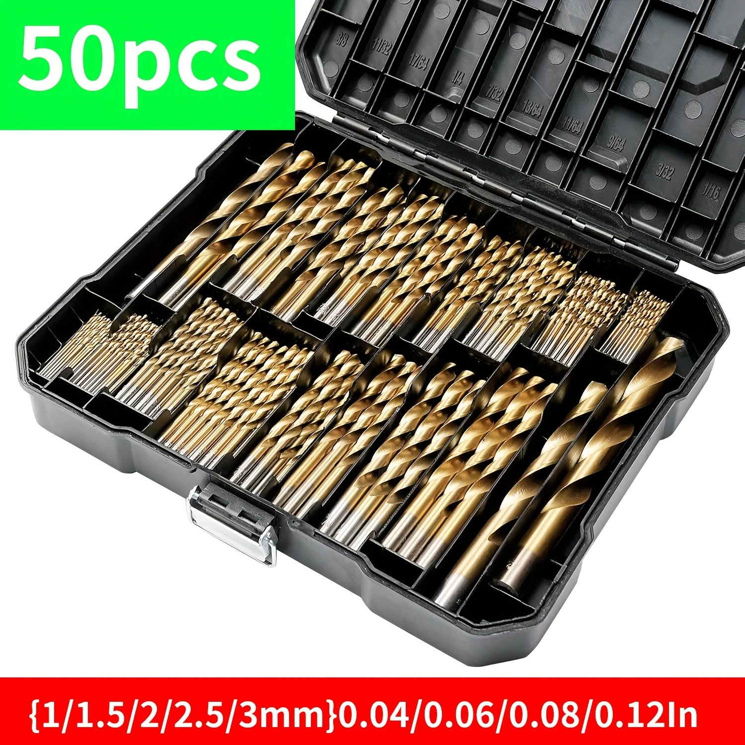 [Titanium Drill Bits] 50pcs Titanium Coated HSS Drill Bit Set, High-Performance Round Shank, Spiral Flute Design, Multi-Size | Workshop Drill Accessories, Modern Drill Bit Set