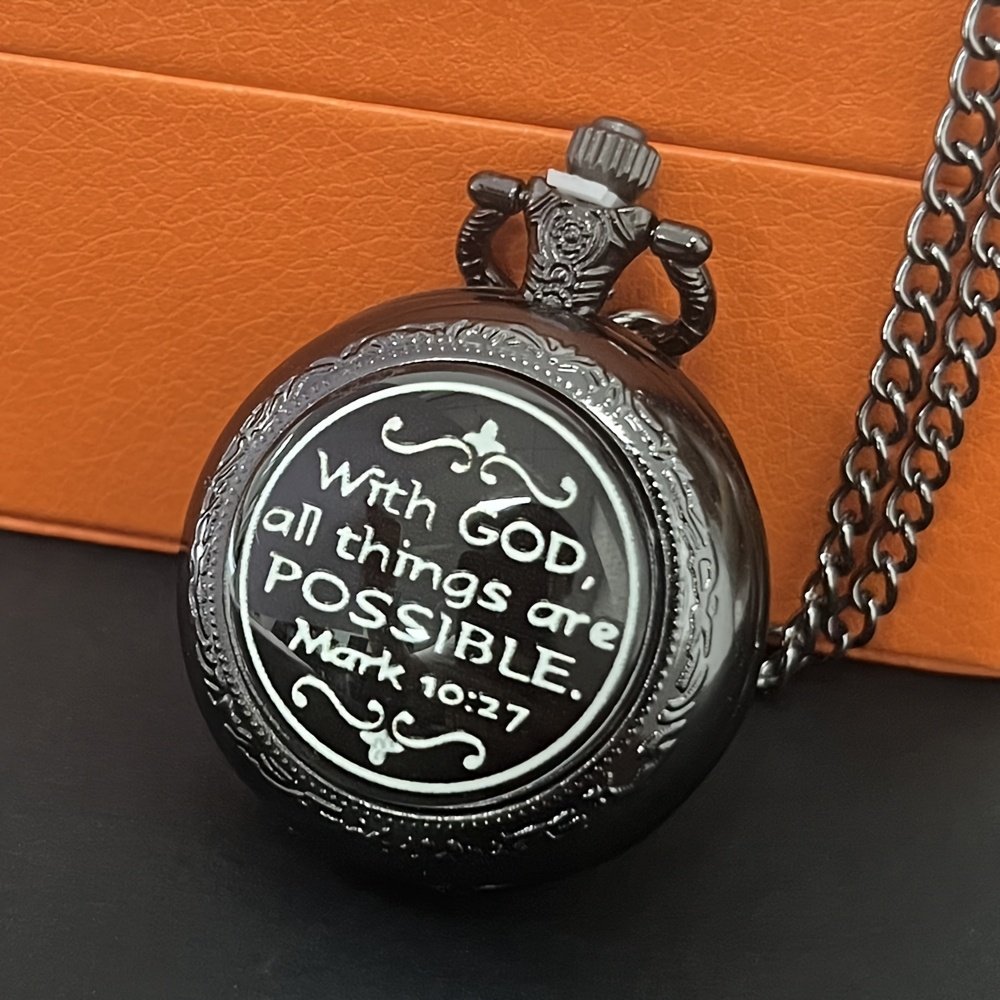 TOOP Punk Style Black Pocket Watch for Men – Inspirational Mark 10:27 Engraved Stainless Steel Quartz Movement, Round Dial with Pointer Display – Couple’s Gift, Non-Waterproof Electronic Drive Accessory, Fashion Accessory, Decorative Chain, Intricate Engravings, Classic Design, Stylish Accessory, Retro Timepiece, Durable Chain, Men’s Accessory, Stylish Men