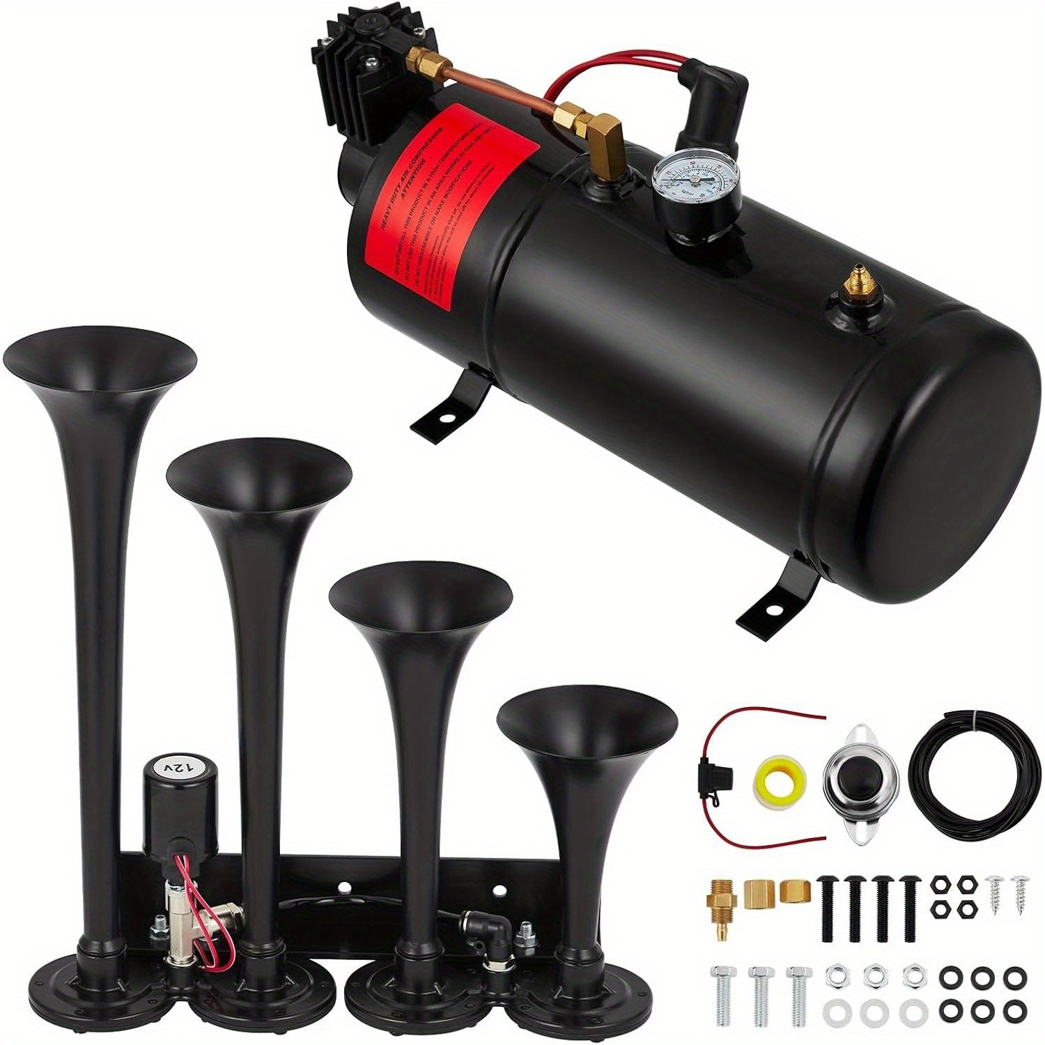 Train Horn Kit 4 Horns 12V, 135 DB truck Air Horn Kit with 0.8 Gallon Tank &150 PSI Air Compressor, Train Horns for Pickup Trucks, Car, Motorcycle, Semi, for Jeep, RV, SUV