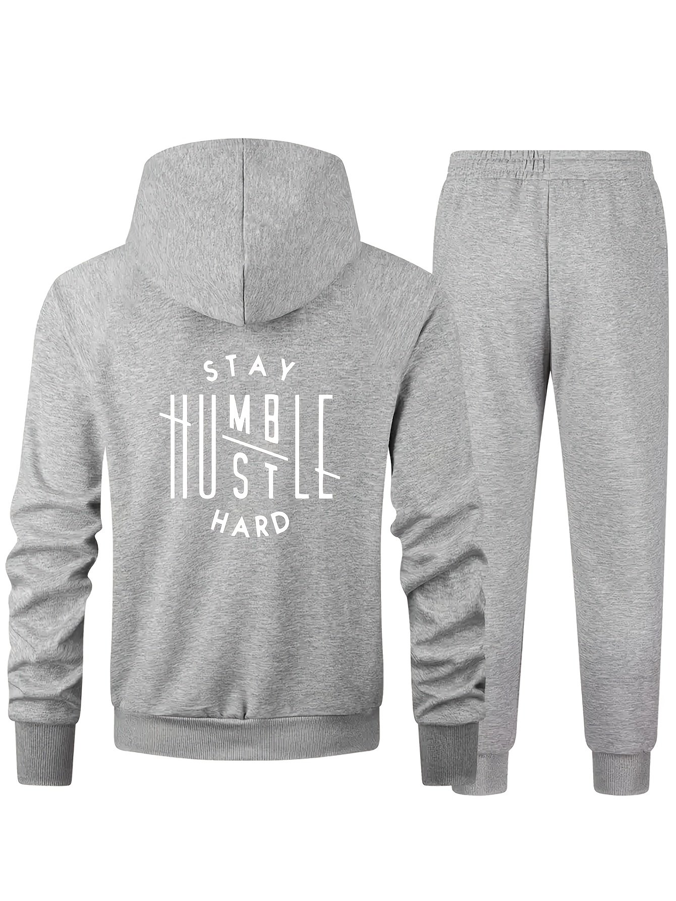 two piece set of solid color mens sportswear with letter long sleeved zippered hoodie with drawstring and jogging pants suitable for fitness and running
