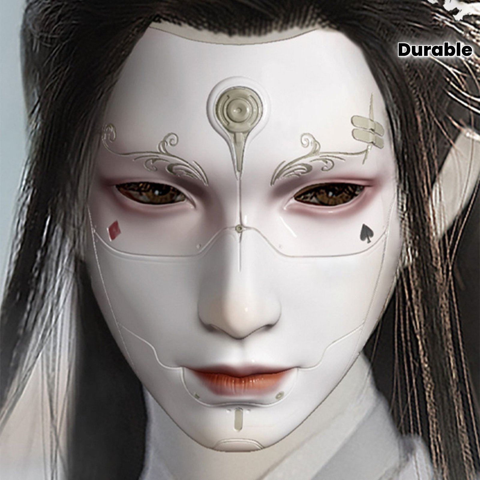 white cyberpunk mask full face with intricate mechanical design durable plastic robot prop for cosplay themed parties costume parties cosplay mask themed event accessory futuristic aesthetic