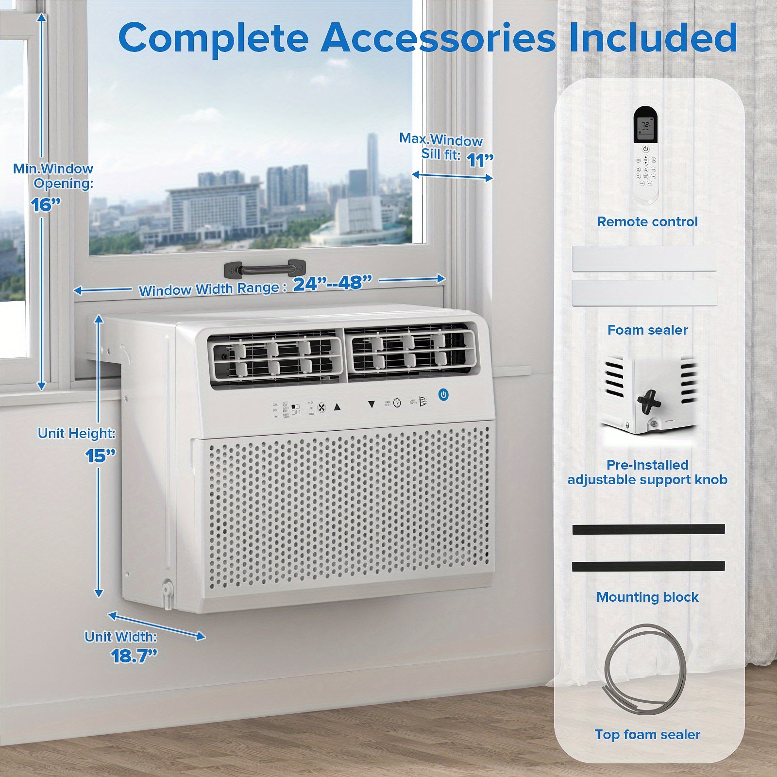 Window Air Conditioner And 35 Inch Tower Fan Optional, 5000/6000/8000/10000/12000/ BTU ASHRAE, Air Conditioner with Cooling, Fan, Dehumidifier, Sleep Mode, Cooling Up to 450 Sq. Ft. with 24H Timer/Digital Display/ Window, Kit U-Shaped