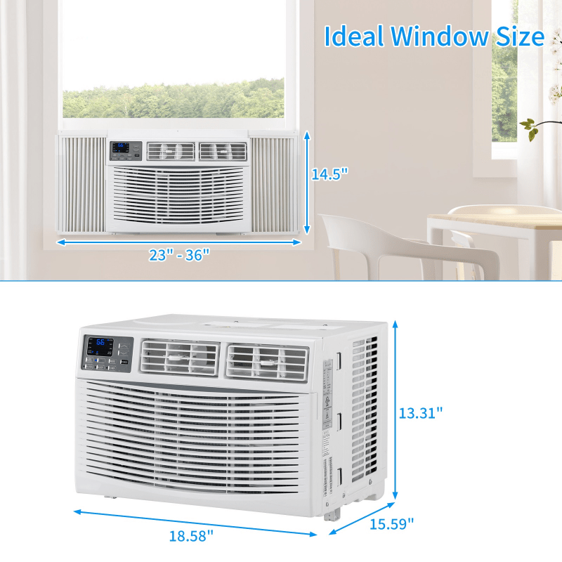 Window air conditioners and tower fans are available for selection, Window AC Units with Mechanical Controls & Easy Install Kit,42 inch Smart Tower Fan with 3 Modes 3 Speeds and Oscillating, ideal for bedrooms, living rooms, offices, small apartments, hotels, White