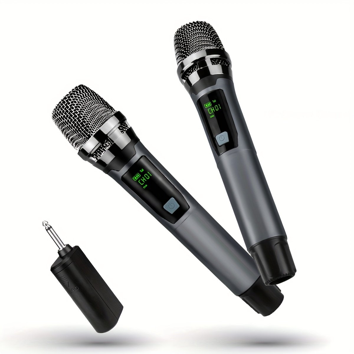 k1 grey wireless microphone 20h 98 ft distance receiving mic and receiver with rechargeable battery for karaoke singing video recording party