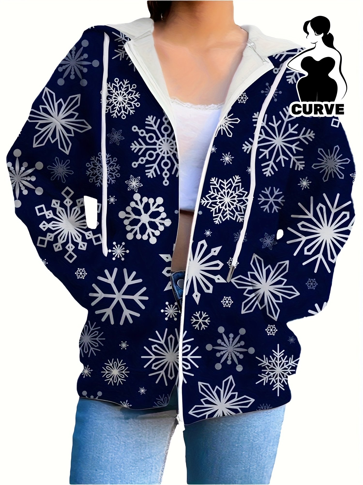 womens casual polyester hoodie with 3d snowflake print zippered hooded sweatshirt for all street fashion style sweater hoodie